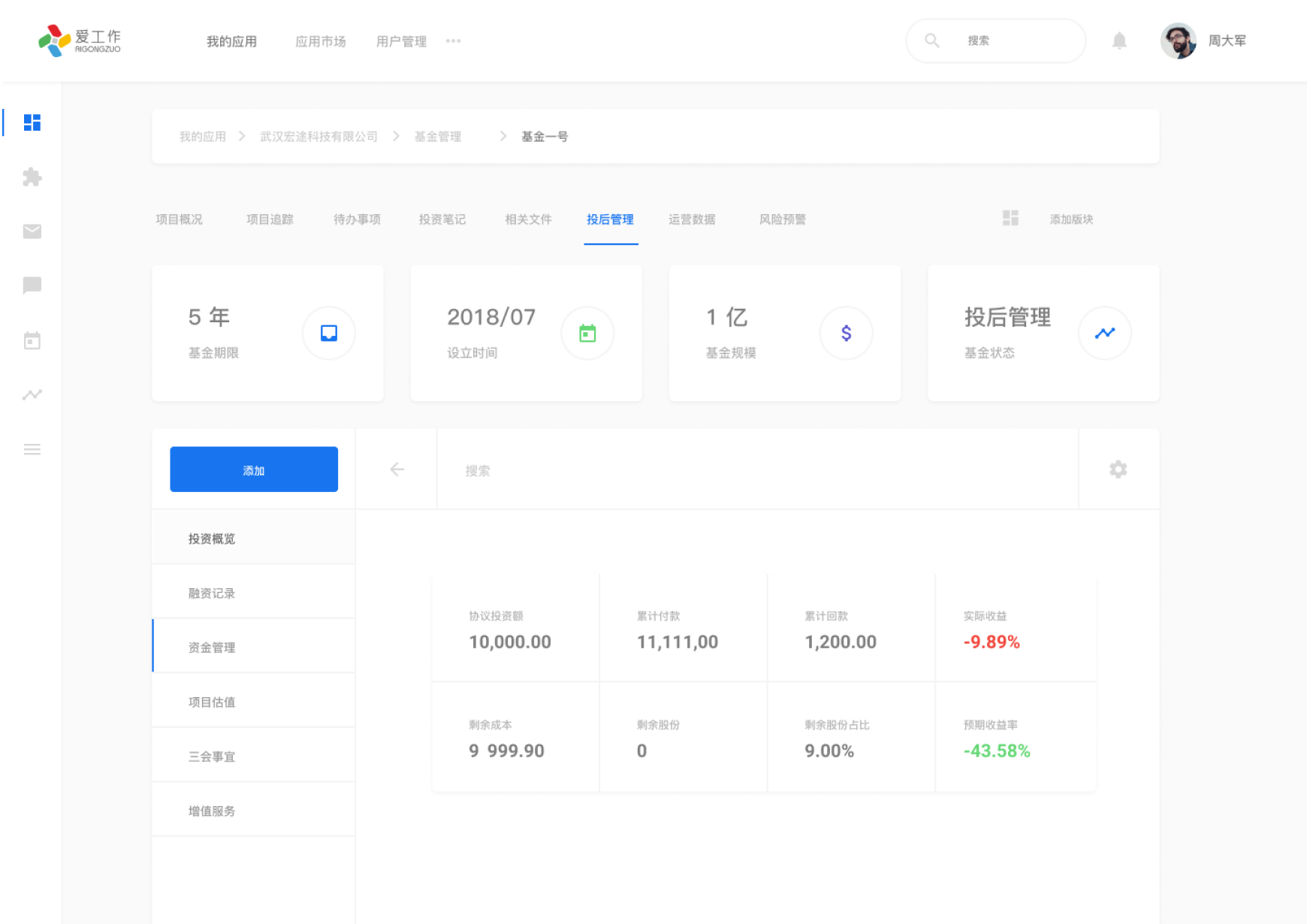 以“募、投、管、退”为业务逻辑,从基金设立、募集、运营、清算以及项目投前、投后、退出各个环节打通公司业务的线上管控。